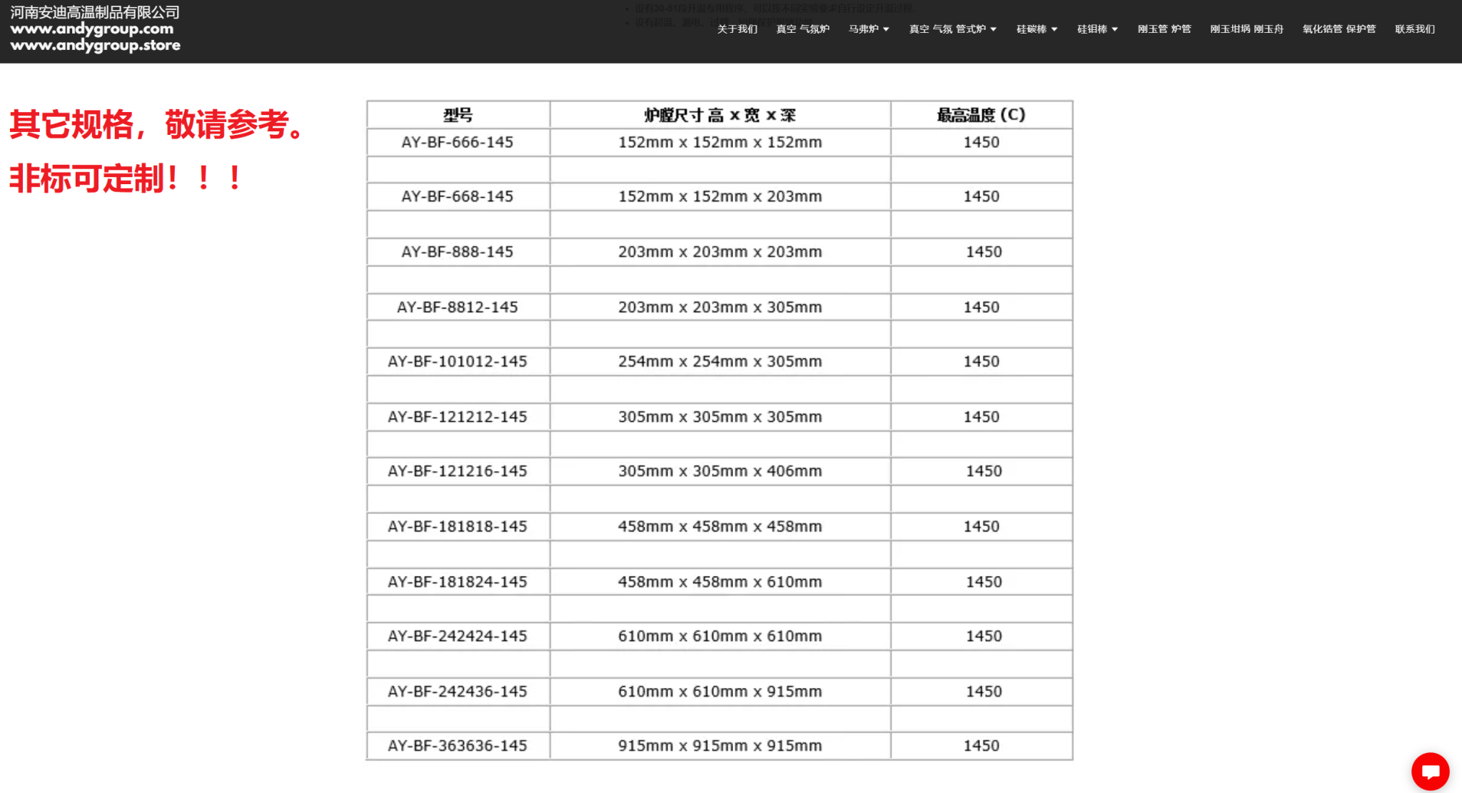 型号 | 炉膛尺寸?高 x?宽 x?深 | 最高温度?(C) | 持续炉膛温度 (C) |